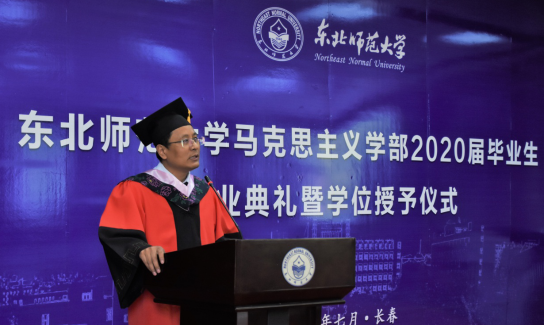 部长庞立生在完成对50余名主会场学生代表的学位授予后,进行了致辞。他说,在每个人一生成长中,总会有一些特别的经历,这场特殊的毕业典礼将会给我们每个人留下格外深刻的记忆。庞老师谈到,大学的学习,不仅使我们获得了一种专业性的认知概念框架,也同时给予我们一种内在超越的人生态度。