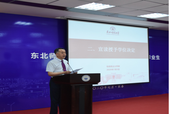 党委书记孟宪生主持。在典礼正式开始前,现场播放了由学校录制的毕业主题MV《远方有你2020》,9:30,毕业典礼在雄壮激昂的国歌声中正式拉开序幕。