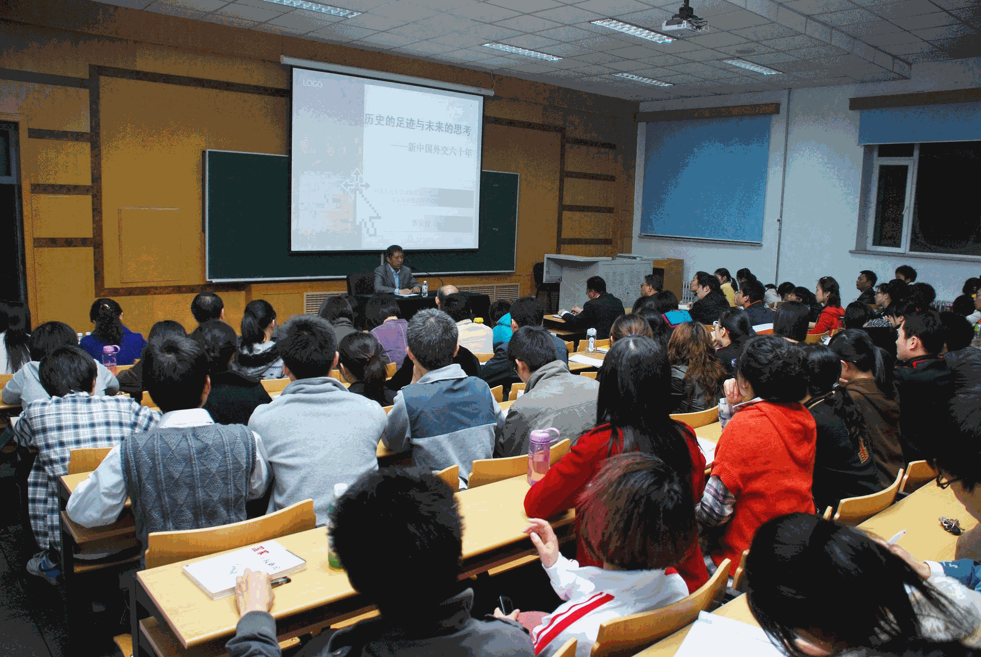 李教授概括了新中国的外交历程,阐明了中国外交的六大理念——意识形态与国家利益关系、时代观念、国际主义、和谐世界、新安全观和伙伴关系,提出了自我发展、自己承担和自我约束的外交原则。最后,李教授回答了同学们提出的问题。李教授风趣幽默的语言风格和精辟入里的分析赢得听众的阵阵掌声。