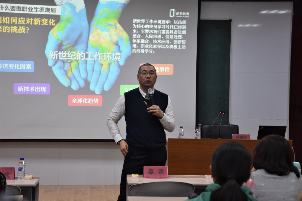 共同举办“赢在大学从规划开始”职业生涯规划讲座,主讲人为吉林省生涯发展委员会副会长,吉林省教育厅毕业生就业指导中心特聘培训师,吉林财经大学职业发展与就业指导教研室主任尹潮东老师。
