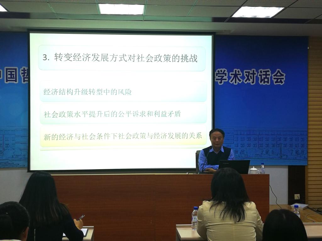 二楼会议室作了题为“当前我国社会政策发展的主要议题”的学术报告。报告首先回顾了社会政策发展的历程,介绍了改革开放以来影响社会政策的经济因素和观念因素及由此造成的我国低水平的社会保护和高度外向型经济,以及过去十年以来社会政策的恢复性发展。重点介绍了经济新常态下的我国社会政策面临的挑战和机遇。关信平教授提出当代我国社会政策发展的主要议题是关于福利水平、运行效率、制度公平、和责任主体间关系四大议题。报告中关信平教授指出我国政府在当下应继续加大社会支出,以社会政策托底,从而改善民生,促进社会公平。关信平教授由浅入深的讲述,帮助 同学们理解到了社会政策之于社会治理、社会工作发展的重要意义,为同学们开辟了新的学术视野。