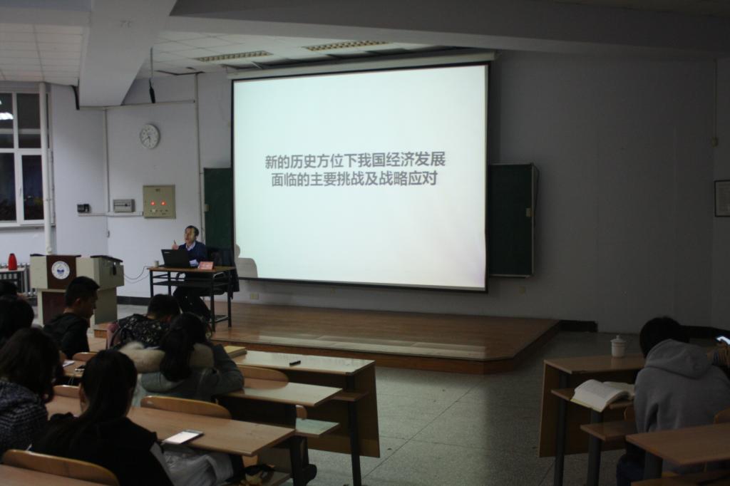 副部长孟宪生教授为广大师生作了题为“新的历史方位下我国经济发展面临的主要挑战及战略应对”的专题报告。近400名师生聆听了本场报告。