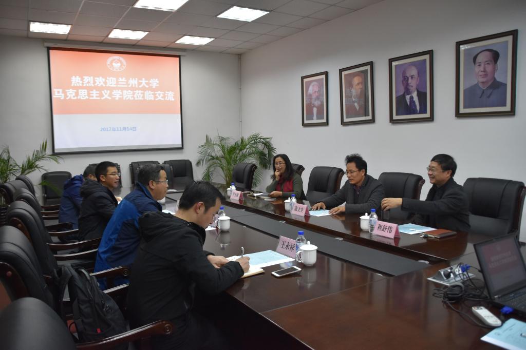 11月14日上午,兰州大学马克思主义学院党委书记赵泽斌一行四人来九州酷游 调研交流。九州酷游 主要负责人和中国近现代史基本问题研究系负责人参加座谈。
