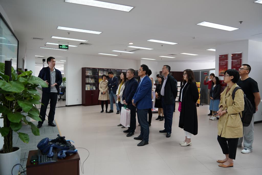 一行前往北京高校思想政治理论课高精尖创新中心(以下简称“中心”)考察调研,中国人民大学马克思主义学院副院长、中心副主任宋学勤,马克思主义学院副院长张晓萌,副院长赵淑梅,研究生思政课教研部主任孙宗伟,中国近现代史纲要教研部主任董佳陪同参观并座谈。中国人民大学马克思主义学院宋学勤教授全面介绍了中心的马克思主义理论系列丛书、《高校思想政治理论课教学研究》、高校思想政治理论课程教学资源平台等相关成果,演示并讲解了中心搭建的思政课网络资源平台在课程开发、资源共享、学术创新等方面取得的突出成绩。