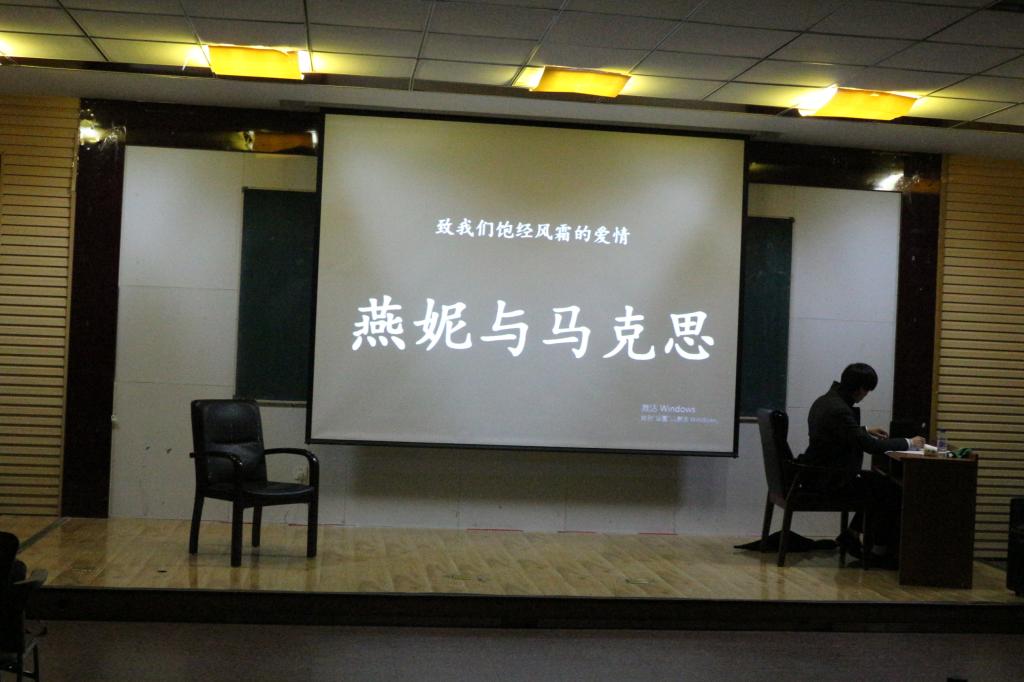 18日晚的哲学日主题庆祝活动在哲学经典诵读中拉开序幕,师生不仅表演了精彩的文艺节目,还进行了游戏和抽取购书卡等活动互动,毕业学生则通过视频表达了对母校师生的祝福。哲学日最为期待的依然是哲学专业学生编演的哲学戏剧。本次戏剧主题是“马克思与燕妮——致我们饱经风霜的爱情”,从生活的一面揭示了伟人马克思光辉的人生,掀起了庆祝活动的高潮。
