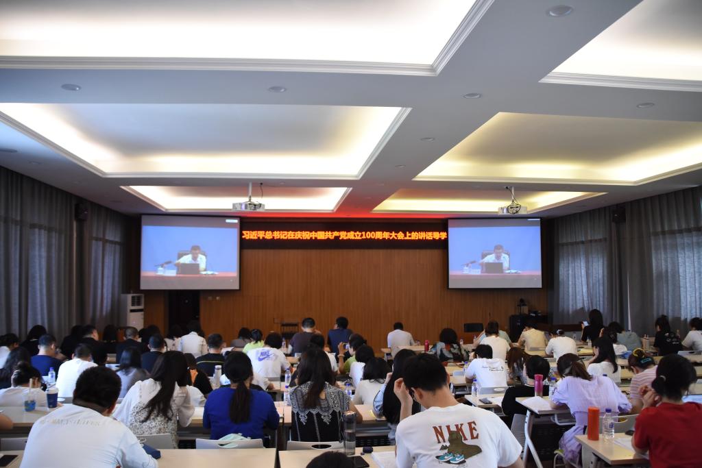首先组织师生在线观看了教育部社科司组织的“周末大讲堂”,聆听了中国社科院马克思主义研究院党委书记辛向阳教授主讲的“习近平总书记在庆祝中国共产党成立100周年大会上的讲话导学”。辛向阳教授从习近平总书记在庆祝中国共产党成立100周年大会上的讲话的三个鲜明特征切入,指出讲话充满马克思主义的政治智慧,充满无比的自信和自豪之情。他强调,中国共产党成立百年所取得的伟大成就,为实现中华民族伟大复兴奠定了坚实的社会条件、政治前提、制度保障和物质基础。百年来,我们创造了无比恢弘的经济史诗、政治史诗和社会史诗,为世界人类政治文明做出了独一无二的贡献。其后,辛向阳教授阐释了习近平总书记讲话内容所蕴含的新理念、新观点、新论断,强调总书记“七一”讲话是对中国共产党百年光辉历程的历史性总结,是进一步推进中华民族伟大复兴的政治总动员,是马克思主义中国化的重要纲领性文献。