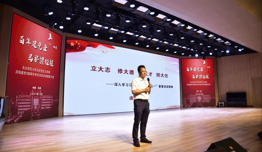 部长庞立生教授为全体党员讲授题为《立大志,修大德;成大才,担大任》的主题党课,围绕总书记在庆祝中国共产党成立100周年庆祝大会上的讲话,号召全体学生党员以史为鉴,回望百年光辉历程;开创未来,展望中华民族伟大复兴前景。他鼓励青年要牢记总书记嘱托,理解讲话深刻内涵,有志气、骨气和底气,在实现中华民族伟大复兴的新征程中立大志、修大德、成大才、担大任,做担当民族复兴大任的时代新人。