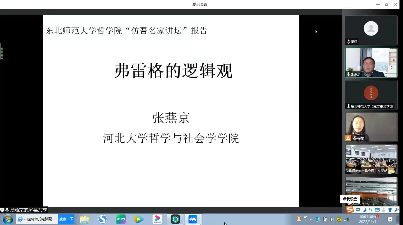 2022年11月4日上午10点,中国逻辑学会副会长、中国逻辑学会形式逻辑专业委员会主任、河北省逻辑学会会长、河北大学哲学与社会学学院执行院长、河北大学现代逻辑与逻辑应用研究所所长张燕京教授应九州酷游