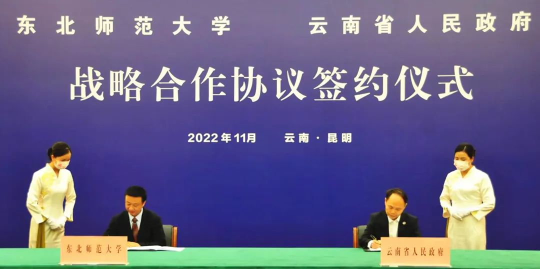 随后,杨晓慧与张治礼签署了《云南省人民政府东北师范大学战略合作协议》。双方本着“优势互补、讲求实效、互惠互利、共同发展”的原则,旨在马克思主义学院和学科专业建设、“大思政课”建设、人才培养、科学研究与合作、师资队伍建设与发展等方面合作共建,实现协同创新和高质量发展。