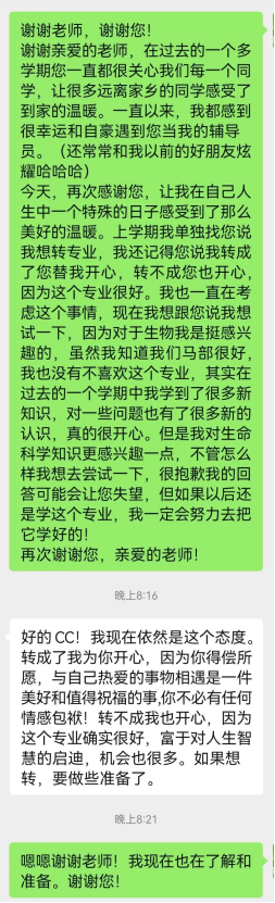 不知道你是不是还想转专业?我想说你虽然是一名理科生,但是你有学文科的天分。上学期你的成绩在全年级来说都属于是靠前的,在文科没什么基础的情况下,取得这个成绩是非常值得称赞的!