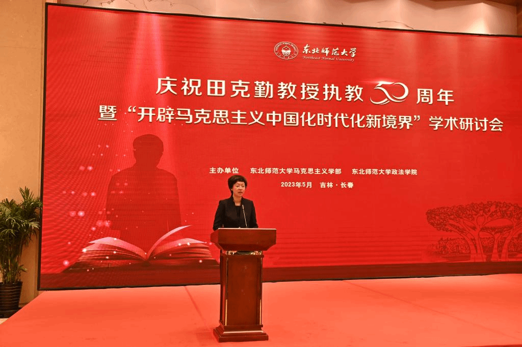 赵永波代表省委宣传部致辞。她指出,东北师范大学多年来积淀的红色文化底蕴内化为每一名东师人的红色基因,薪火相传,已经成为学校发展的重要文化根基和宝贵精神财富,也已成为吉林省马克思主义理论教育事业生生不息,发展壮大的丰厚滋养。田克勤教授作为学界久负盛名的马克思主义理论研究专家,长期从事马克思主义理论的教学和研究工作,为吉林省马克思主义理论研究与宣传作出了杰出贡献。