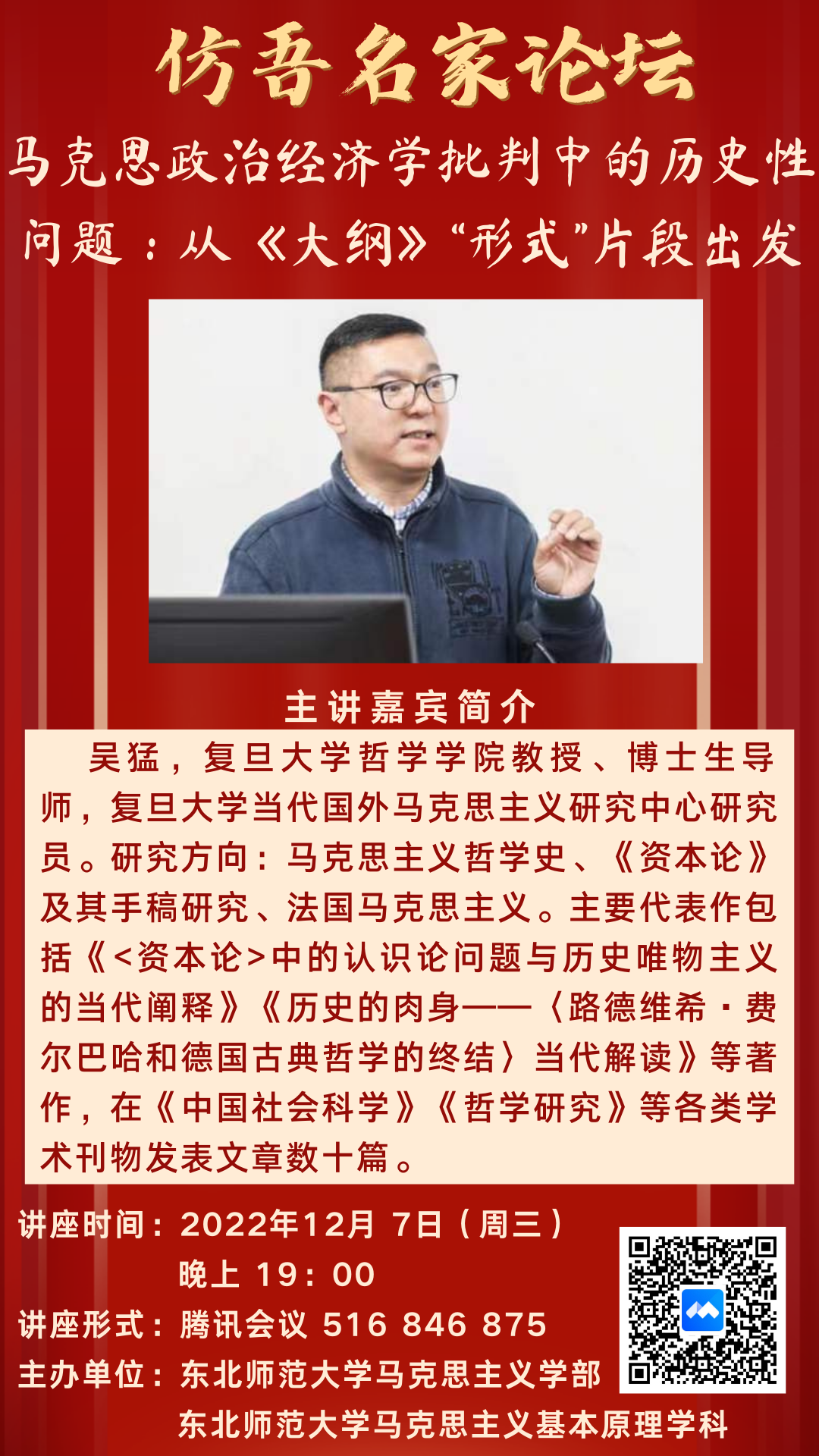 讲座预告:马克思主义政治经济学的历史性问题:从《大纲》“形式”片段出发