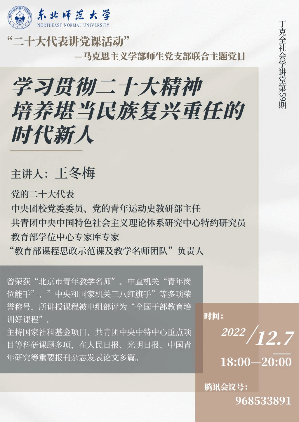 讲座预告:学习贯彻二十大精神培养堪当民族复兴重任的时代新人