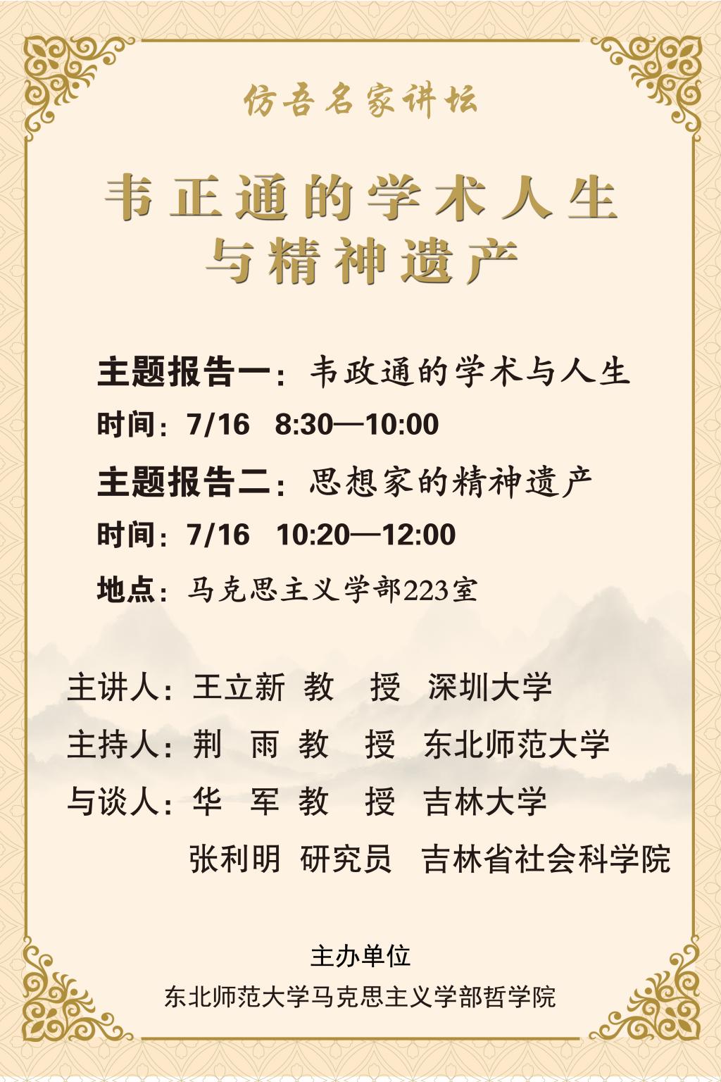 讲座预告:韦正通的学术人生与精神遗产