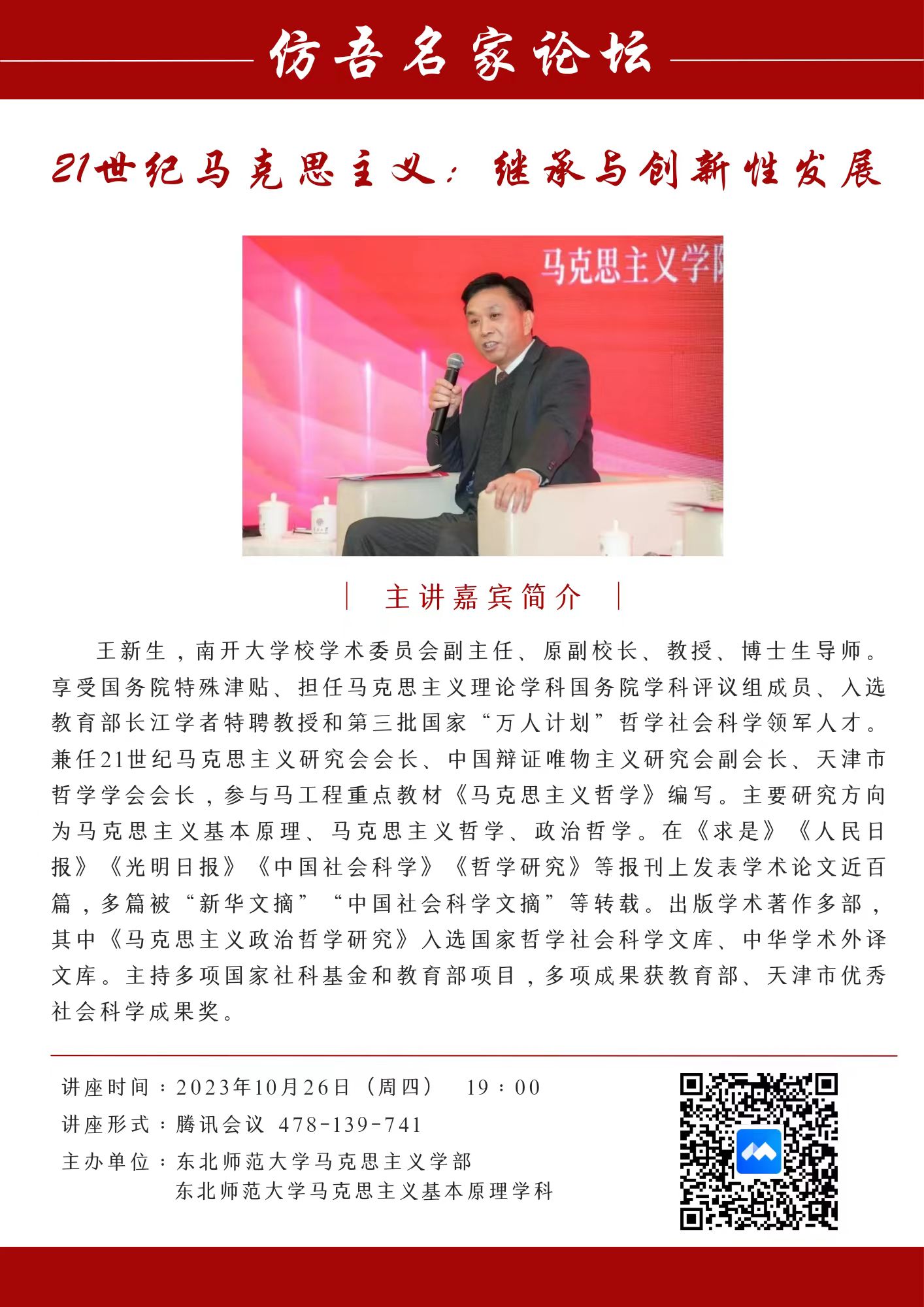 讲座预告:21世纪马克思主义: 继承与创新性发展