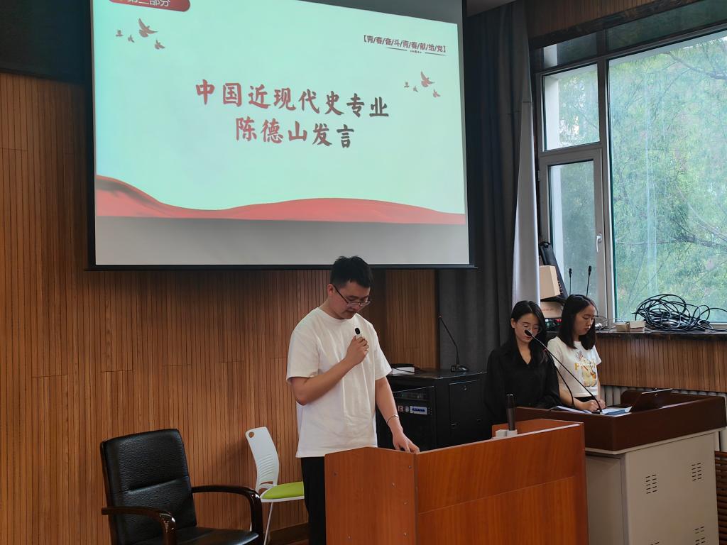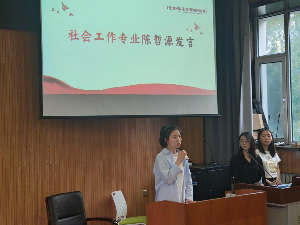 活动尾声,由各专业同学代表上台演讲。社会工作专业的陈哲源同学,讲述了自己与五四的故事;马克思主义发展史专业的马丽君同学,分享了中国梦与青春梦;近现代史基本问题研究专业的陈德山同学,号召了同学们新时代当有新作为。