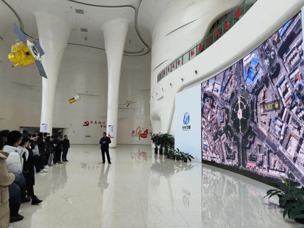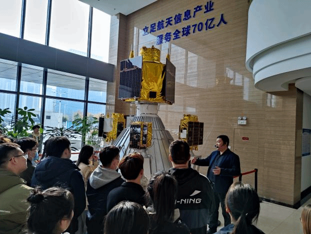 在长光卫星技术股份有限公司,科普教育基地负责人张磊老师为同学们详细讲解了公司实现科技自立自强、做强做大民族品牌的创业故事,介绍了中国第一颗自主研发的商用高分辨率遥感卫星“吉林一号” 的设计、制造、调试过程和卫星遥感数据在各领域的应用成果。同学们还近距离观摩了卫星制造车间实景,进一步激发了爱国热情、增强了民族自信心和自豪感。