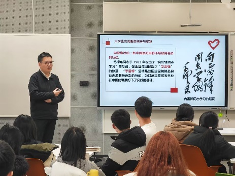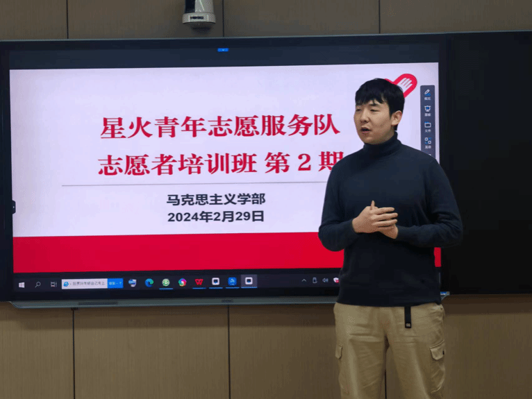 本科生党支部书记、2023级本科生辅导员宋冰老师主讲。宋老师带领同学们深入学习了习近平总书记关于志愿服务的重要论述,从志愿服务的历史演进、重要意义、概念界定、价值、理念、基本领域等6个部分梳理了志愿服务基本理论知识,还邀请部分同学分享了参与返家乡志愿服务活动的感受。