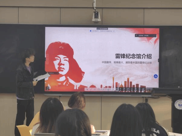 动员会上,指导老师明确了本次红色实践的学习目标和成果要求。25名同学根据个人兴趣和意愿分成5个学习小组,分别对应“抗日战争精神”“抗美援朝精神”“共和国工业成长史”“雷锋精神”“航空报国精神”5个学习单元。各小组搜集相关资料,在出发前的集体理论学习会上进行交流展示,小组代表依次介绍了各场馆的建立背景,让全体同学带着问题与思考前往场馆寻找答案。